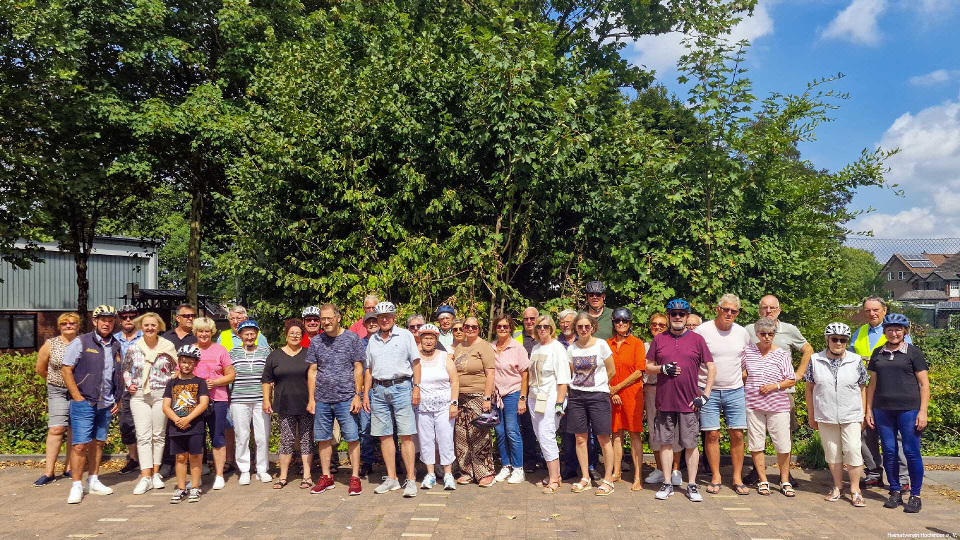 Gemeinsam haben Mitglieder des Heimatvereins Hochmoor und des Kolping am letzten Samstag ihre jährliche Pättkestour rund um Hochmoor unternommen. Rund 25 Mitglieder waren der Einladung zu der Fahrt gefolgt und trafen sich zur sonnigen Mittagszeit mit ihren Rädern in der grünen Mitte von Hochmoor, um nach einem Satteltrunk gestärkt in die Pedale zu treten. Auf einen Marketenderwagen hatten beide Vereine im Vorfeld verzichtet und so hatte jeder während der Fahrt seine eigene Verpflegung dabei.